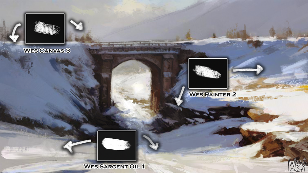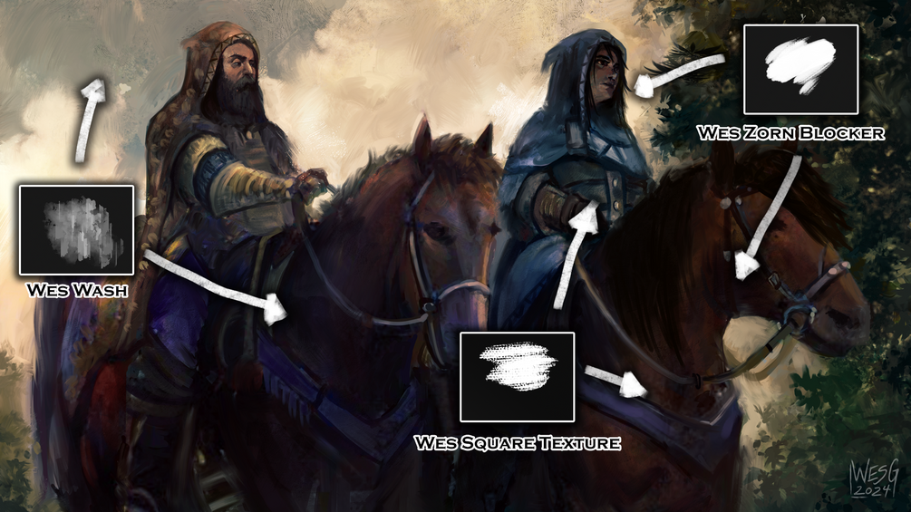 Dive into the world of timeless artistry with a carefully curated selection of brushes that replicate the usability and charm of traditional painting techniques! These brushes feature realistic textures and nuanced stroke control settings, giving you the edge to create digital works that evoke the spirit of classical art. Whether you're a seasoned pro or an aspiring digital artist, this versatile brush set features a huge variety of must-have tools that opens up new dimensions of your creativity, allowing you to bring your artistic vision to life in ways you never thought possible! Give yourself that "traditional edge" that makes you stand out from the crowd with Wes Gardner's 2024 Brush Pack!